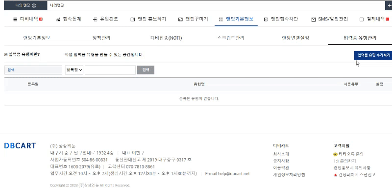 입력폼 유형에 필요로 하는 형태가 없는 경우 랜딩기본정보->입력폼유형관리에서 추가하실 수 있습니다.