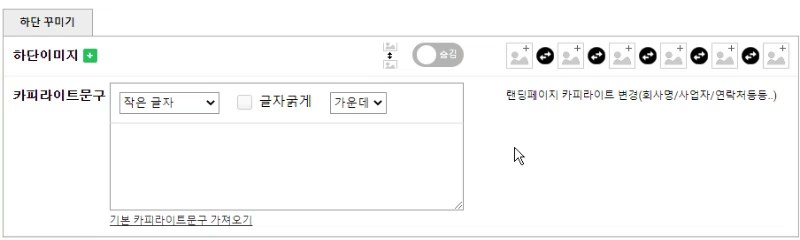 랜딩 꾸미기 이에서 하단 꾸미기 항목에서 설정할 수 있습니다.