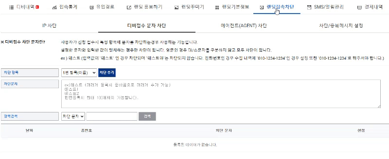 랜딩 접속 차단->디비 접수 문자 차단에서 설정할 수 있습니다.