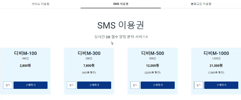 랜딩 페이지에 다양하게 활용되는 SMS는 이용요금 안내 SMS 이용권을 통해서 구매가 가능합니다.