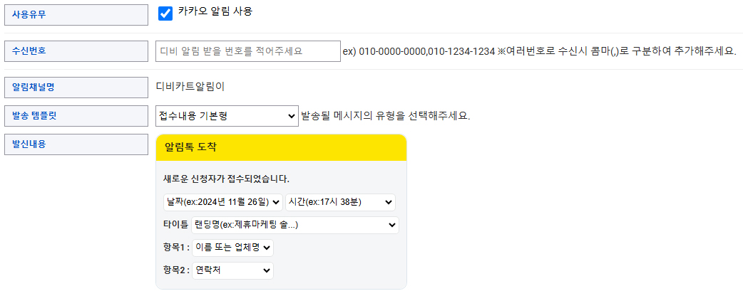 노티 전송을 설정 후 일부 수신 주소의 속도가 느린 경우 완료 페이지나 신청 완료 메시지가 늦게 표시되는 현상이 있을 수 있습니다.