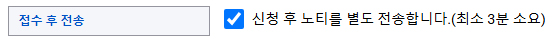 `접수 후 전송`을 체크하는 경우 신청 시에 노티가 전달되지 않고 노티 전송 서버에서 별도로 전달이 됩니다.
