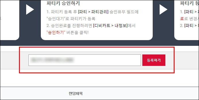 ③ 상단에 파티관리 클릭! 디비카트로 이동 ->