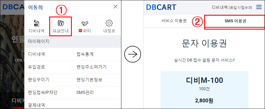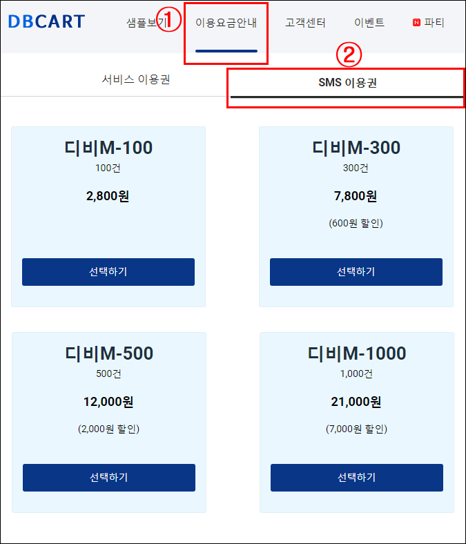 □ 문자 이용권 충전페이지 : https://dbcart.net/charge_sms.html