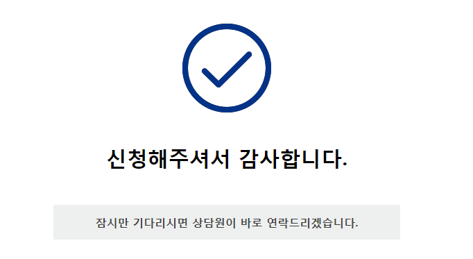 완료 화면을 설정하면 위와같이 신청완료후에 설정한 멘트가 표시됩니다.