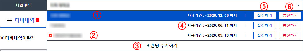 ⑥ 충전하기 - 선택한 랜딩페이지 사용기간이 만료시 해당 버튼을 통해서 충전이 가능합니다.