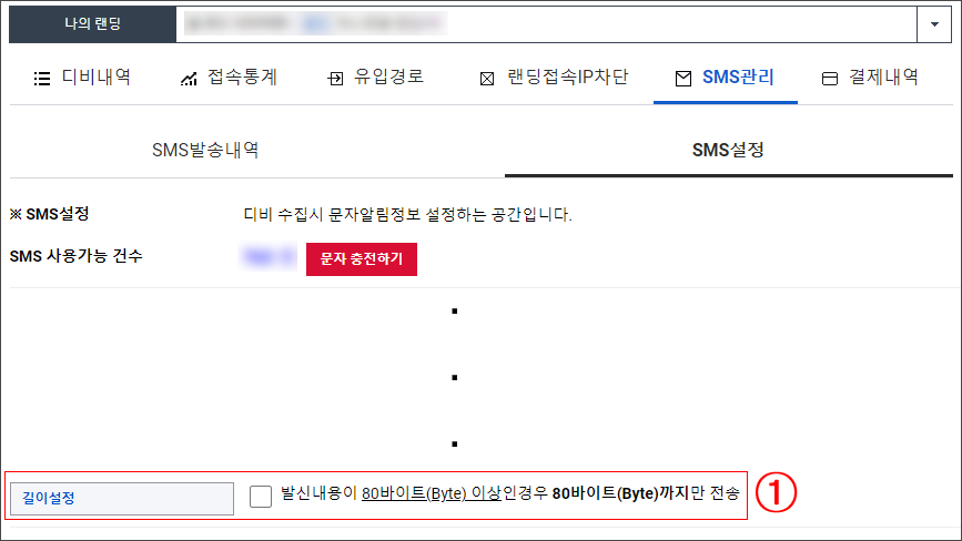 설정위치 : SMS관리 > SMS설정 > 길이설정