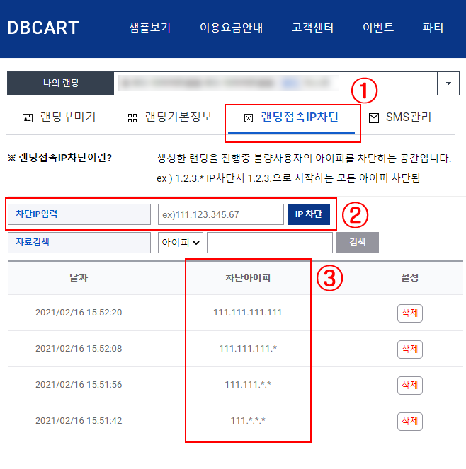 ■ 랜딩페이지 대역별 IP차단 기능