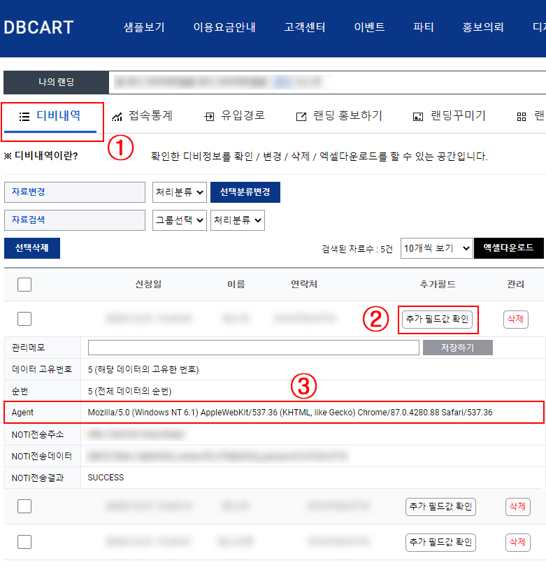 ① 디비관리 > 랜딩기본정보 클릭 합니다.