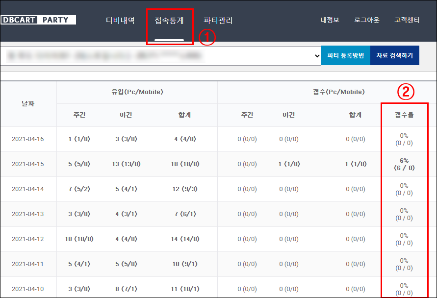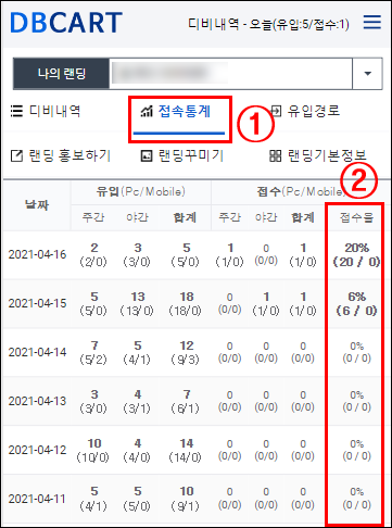 ■ 모바일 [디비내역][접속통계] 접수율 필드 추가