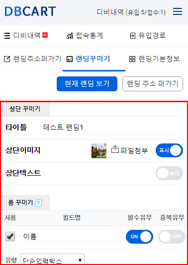 ■ 모바일 > 랜딩꾸미기(홍보할 랜딩페이지를 꾸미는 페이지)