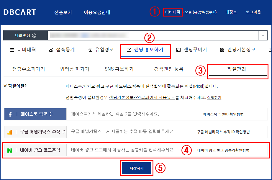 ※ 업데이트 위치 : ① 디비내역 > ② 랜딩홍보하기 > ③ 픽세관리
