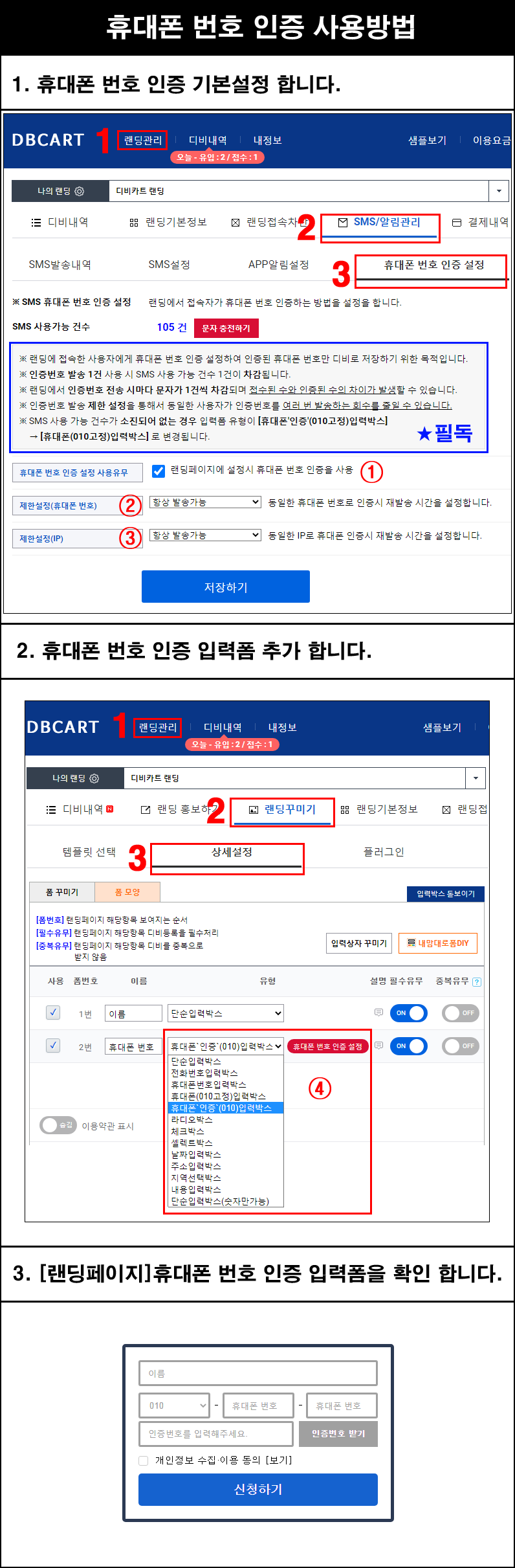 @ 랜딩에 접속한 사용자에게 휴대폰 번호 인증 설정하여 인증된 휴대폰 번호만 디비로 저장하기 위한 목적입니다.