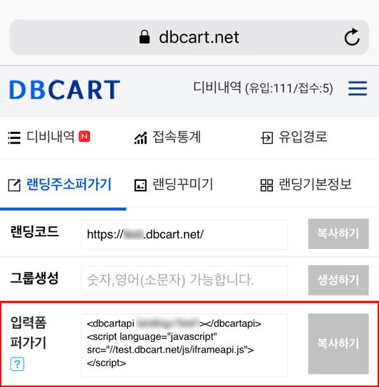 ■ 랜딩주소퍼가기 > 입력폼 퍼가기 추가