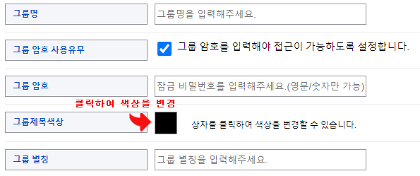 그룹 관리 : 새로운 그룹을 생성할 수 있고 그룹의 색상과 암호를 설정하실 수 있습니다.