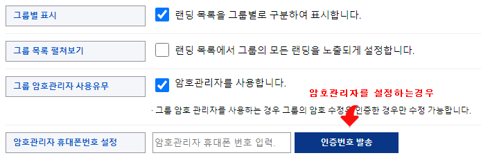 ■ 그룹기능/랜딩별 그룹설정/그룹별 접근 암호 설정