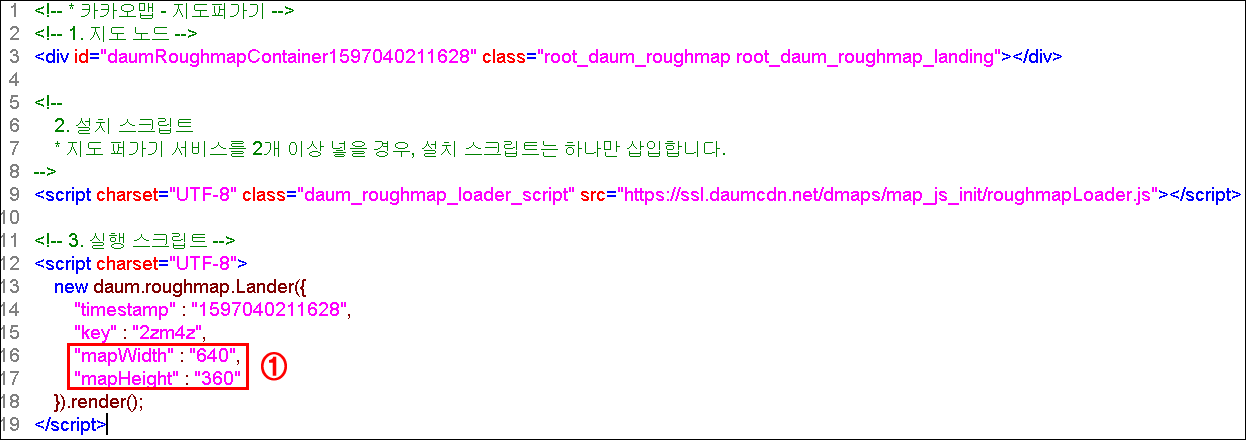 [참고사항] 반응형인경우 div소스에 style='width:100%' 추가 mapWidth : 숫자삭제