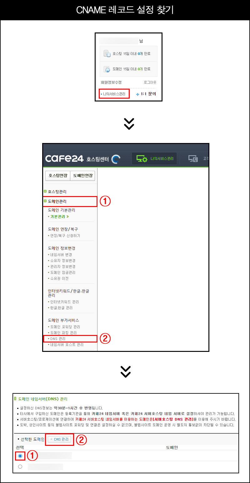 ■ 카페24 도메인 CNAME 설정 위치 및 방법