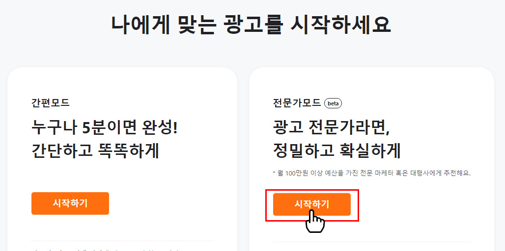 3. 전문가 모드로 `시작하기`를 진행합니다.