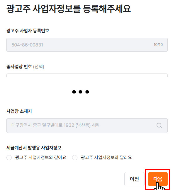 ※ `웹사이트연동`을 클릭하시고 웹사이트 주소는 http or https부터 입력해주세요.