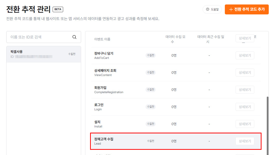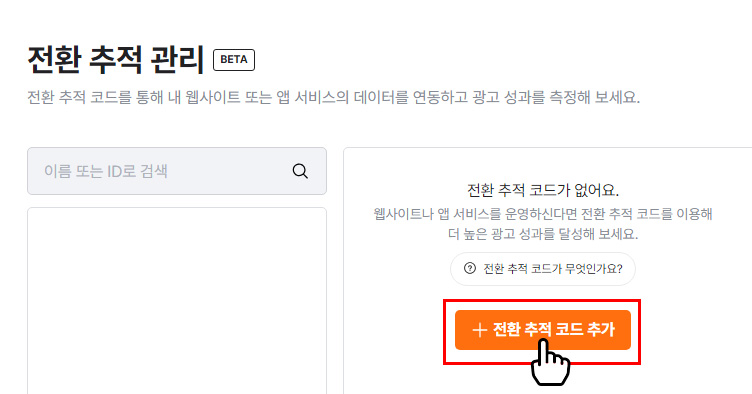 6. + 전환추적 코드 추가를 클릭하여 전환 추적 코드 생성 창을 오픈합니다.