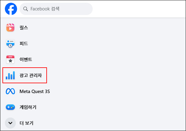 2. 왼쪽 [광고 관리자] 메뉴를 선택합니다.
