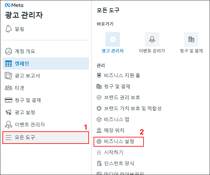 3. 왼쪽 [모든 도구] > [비즈니스 설정] 메뉴를 선택합니다.