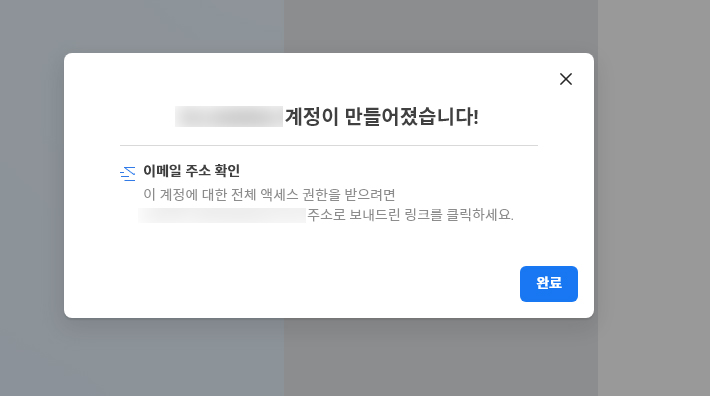 ② 이메일 인증페이지로 돌아와 [완료] 선택합니다.