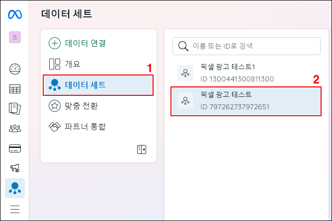 10. [데이터 세트] > [등록한 픽셀 이름] 선택합니다.