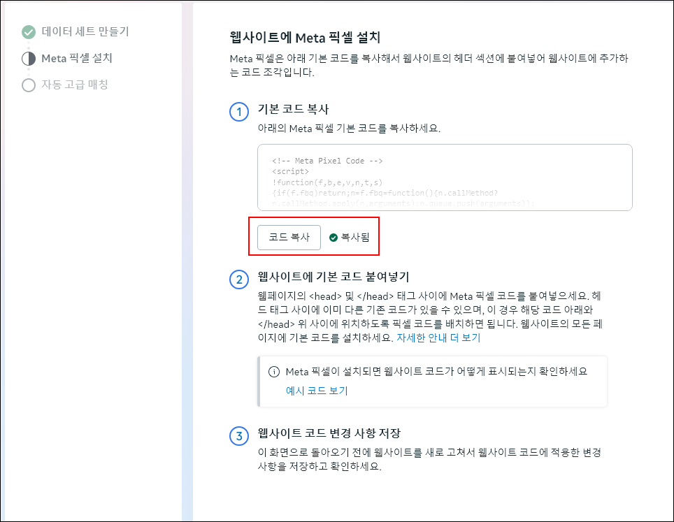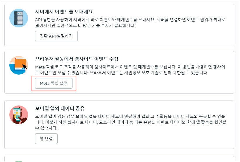 11. [Meta 픽셀 설정] 선택합니다.