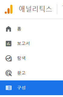 1. 구글 애널리틱스 왼쪽 메뉴 중 `구성`을 선택합니다.