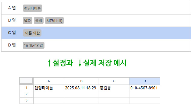 6. 스프레드시트(Google Sheets, XLS) 데이터 설정에 저장할 항목을 설정해 주세요.