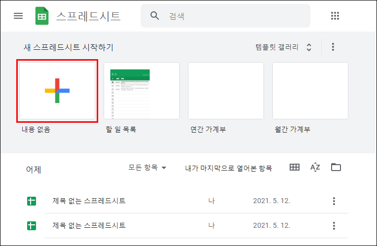 2. 로그인 후 구글 스프레드시트 메인이동