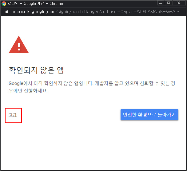 (Google에서 아직 확인하지 않는 앱입니다.)