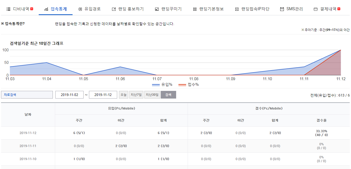 디비카트 랜딩페이지 접속통계 및 유입경로 순위