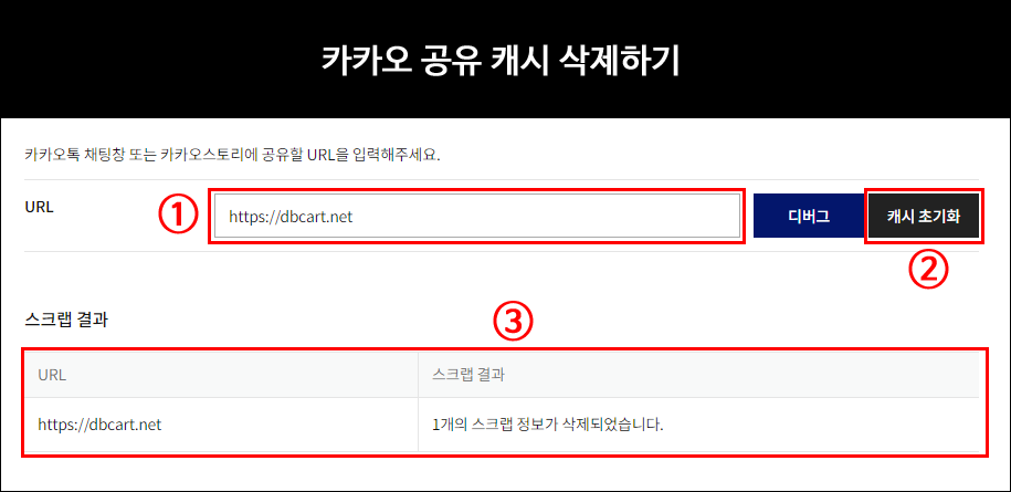 둘째. 캐시 삭제할 URL 입력합니다. ex) https://dbcart.net