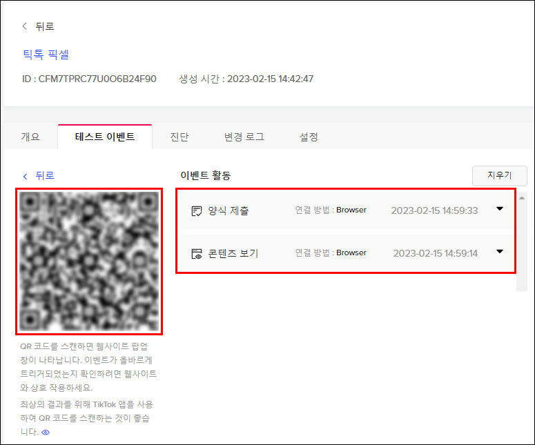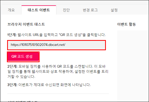 3-4 3-3 체크부분이 모두 확인되었다면 디비카트와 틱톡픽셀은 정상적으로 연결이 되었습니다.
