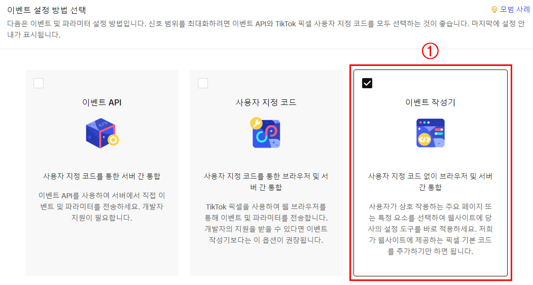 ① 이벤트 설정방법에서 '이벤트생성'을 선택합니다.