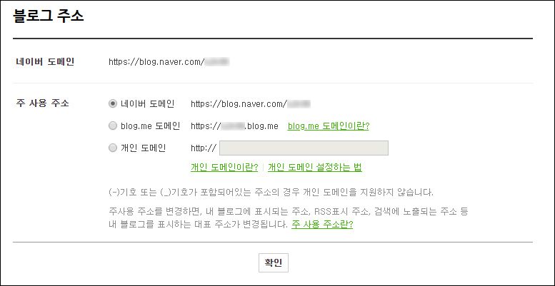 * 블로그 네이버 : 기본설정 > 블로그 주소 > 개인 도메인을 등록