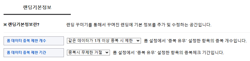 폼 데이터 중복 제한 기간 : 중복 설정한 항목이 이미 존재하더라도 설정한 기간 후에는 신청이 가능하도록 설정이 가능합니다.