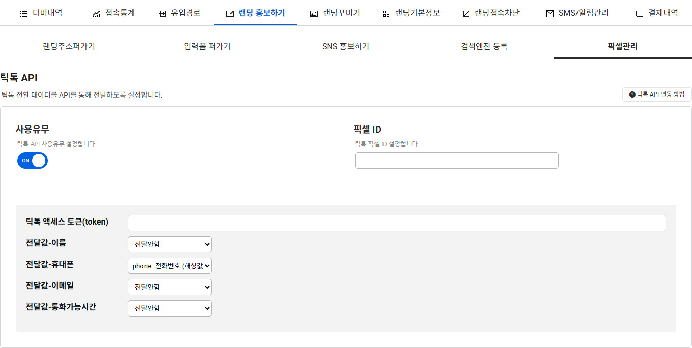 1. 틱톡 전환 데이터 API로 전송 기능 (Beta) 틱톡 전환 시 완료 페이지에서 스크립트로 전송되는 방식만 가능했는데요. API로 서버 대 서버로 전환 데이터가 전송이 가능하도록 틱톡 API 기능이 추가되었습니다. 현재는 Beta 형태로 제공이 되고 일정 기간 동안 변동이 발생할 수 있습니다. ※ 추가적으로 틱톡의 노출 시 content_id가 추가되었습니다.