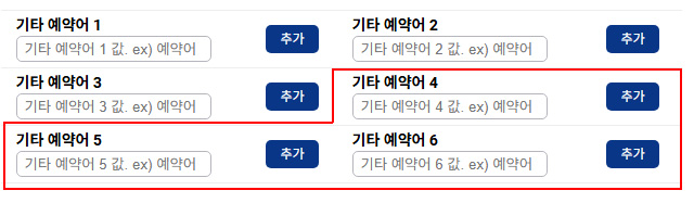 하지만 기존 3개까지만 설정이 가능하여 추가 설정에 대한 한계가 있어 추가 총 6개의 예약어 사용이 가능하도록 개선되었습니다