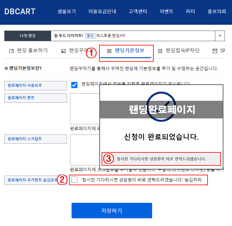 업데이트 내용 : 랜딩 완료페이지 하단 기본멘트 숨김 기능 추가하였습니다.