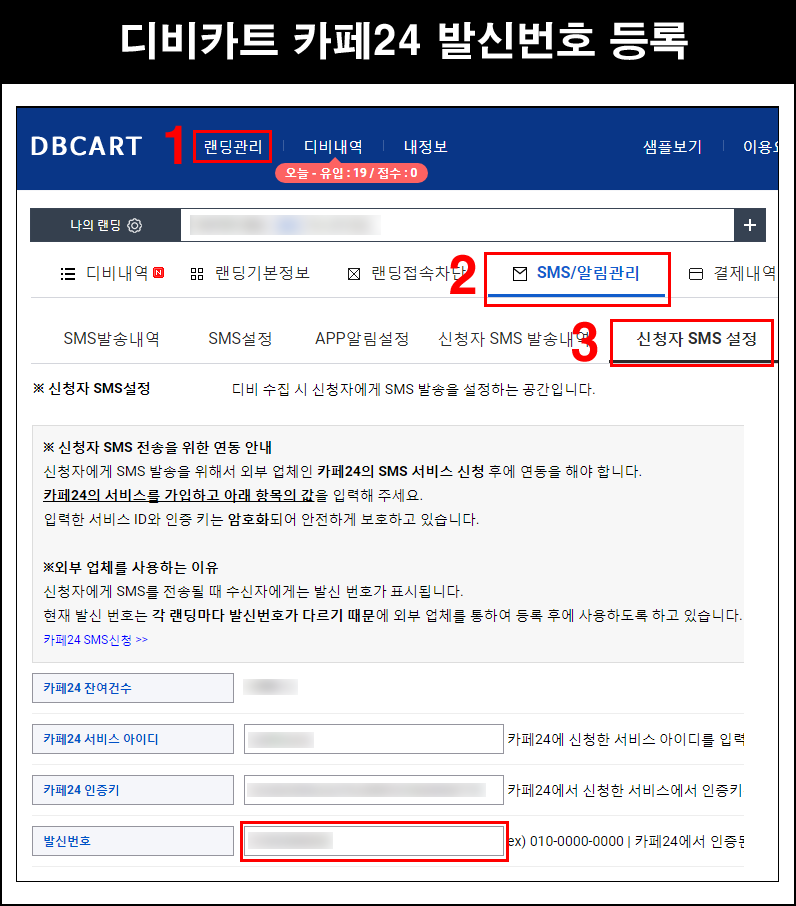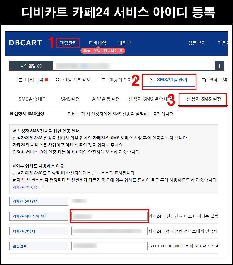 「카페24 문자(SMS) 디비카트 연동 설정하기」