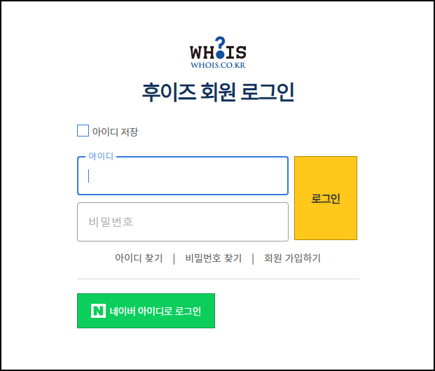 1. 후이즈 로그인 : https://member.whois.co.kr/sso/index.php?tpf=login