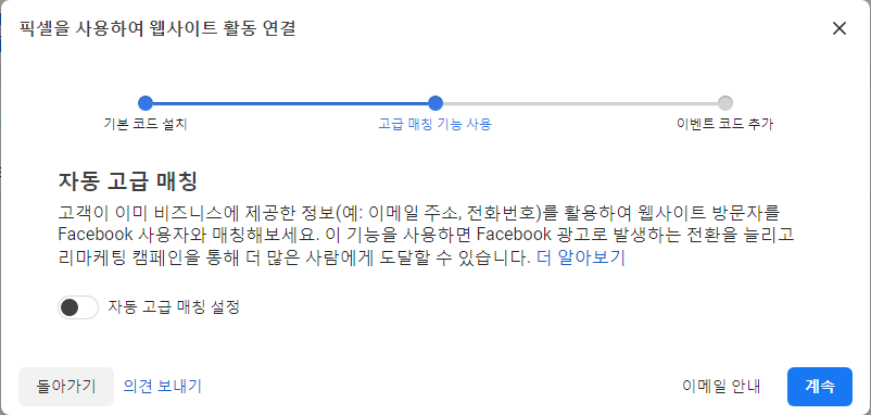 8. 이번 시간에는 픽셀 설정 관련을 설명드리는 부분이라 해당부분은 패스하겠습니다.