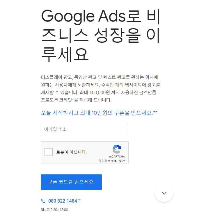 구글 애드워즈 10만원 적립 프로모션