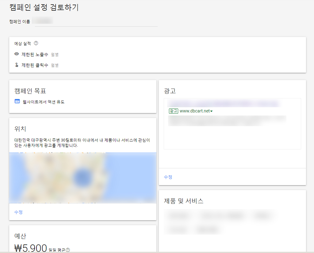 캠페인 설정 검토하기