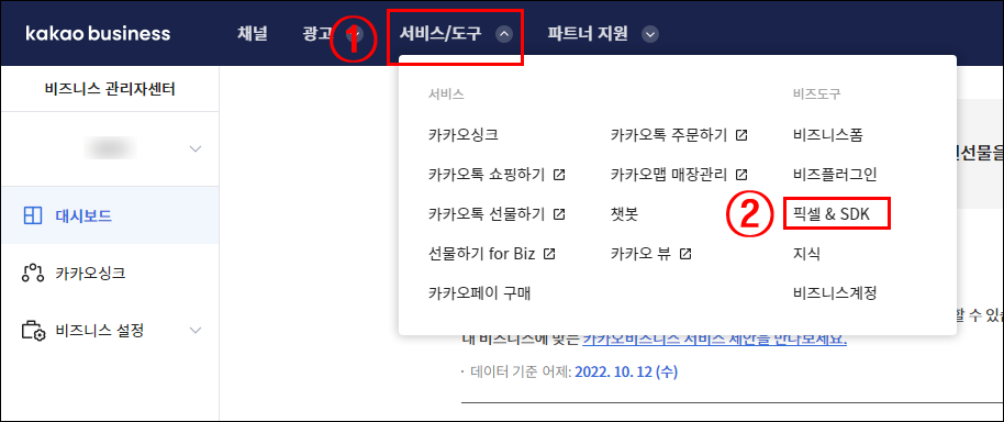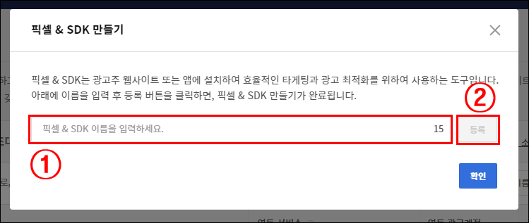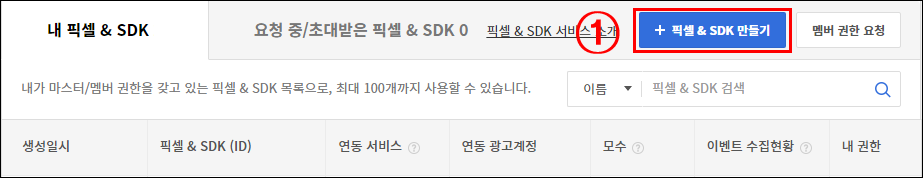 ① 픽셀&SDK 만들기 선택합니다.