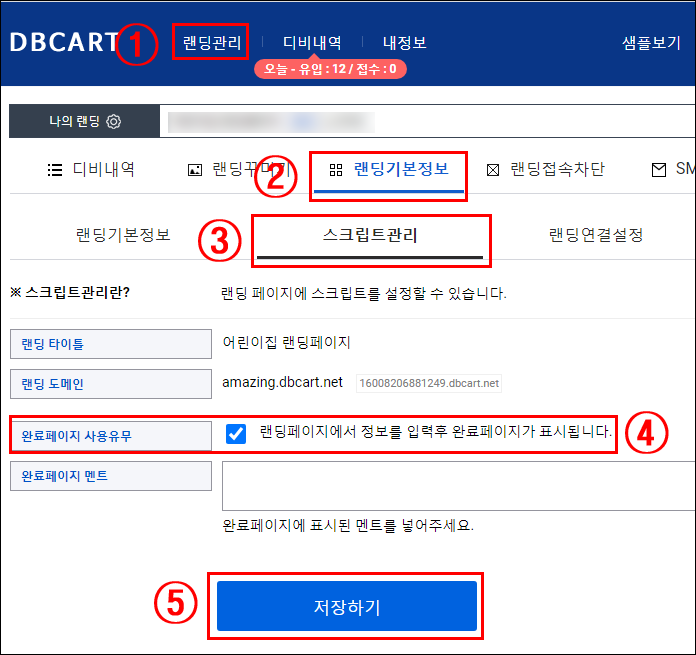 ④ 완료페이지 사용유무 체크를 합니다.